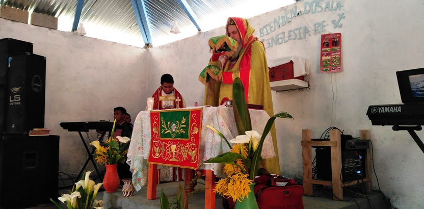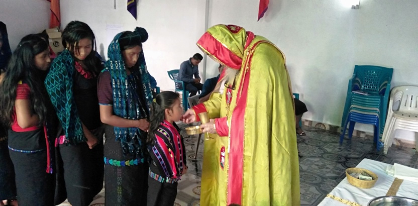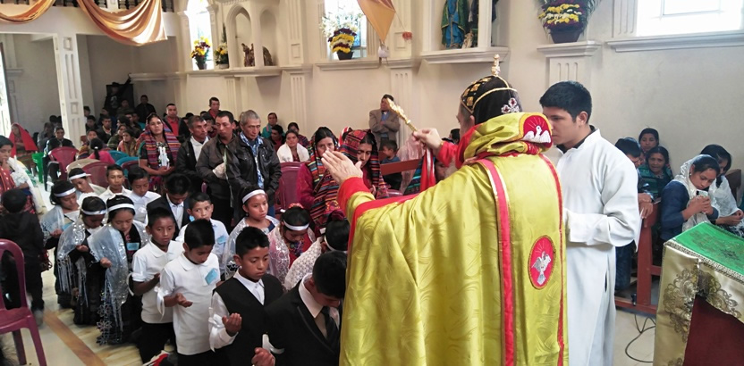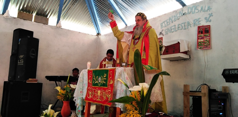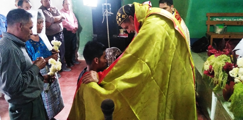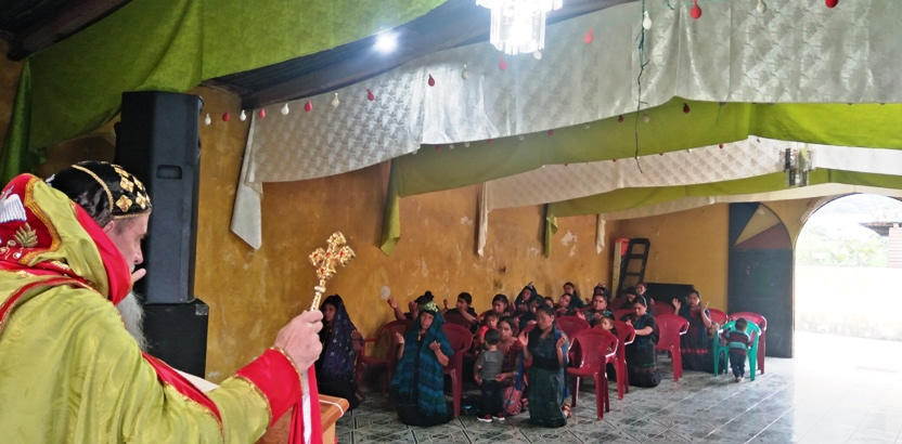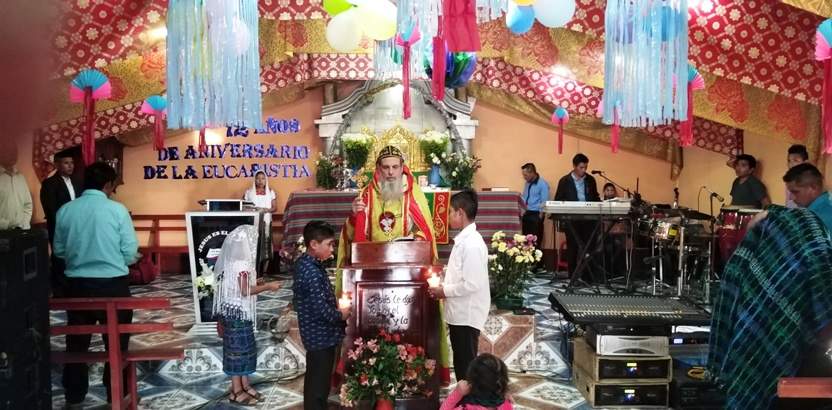 Después de la reunión de formación que se tuvo en la comunidad de Tojchiquel, el arzobispo, acompañado por el Padre José Luís, encargado del Centro Pastoral, concelebraron la Divina Liturgia.
