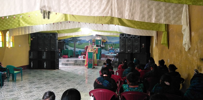 Finalmente, llegó hasta la sede de la comunidad Pentecostés de Santiago Atitlán, en donde celebró la santa misa para servidores y líderes de la comunidad. |