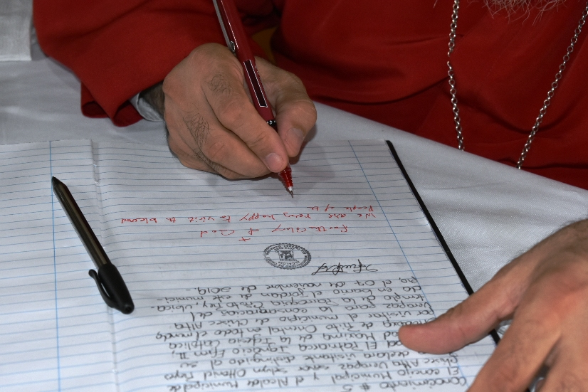 Después de la celebración de las ordenación, en la Capilla de la sede arquidiocesana, Su Santidad inició su encuentro con el presbiterio, haciendo la bendición de la primera piedra de dos edificaciones con carácter histórico, que se desarrollarán en esa propiedad.