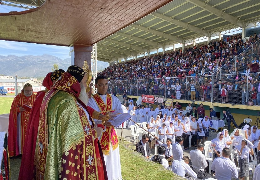 El viernes 8, hacia media mañana, Su Santidad el Patriarca, junto a nuestro arzobispo y a la comitiva patriarcal, celebraron la Santa Misa para más de 3000 fieles, procedentes de diferentes áreas del sur de Alta Verapaz.