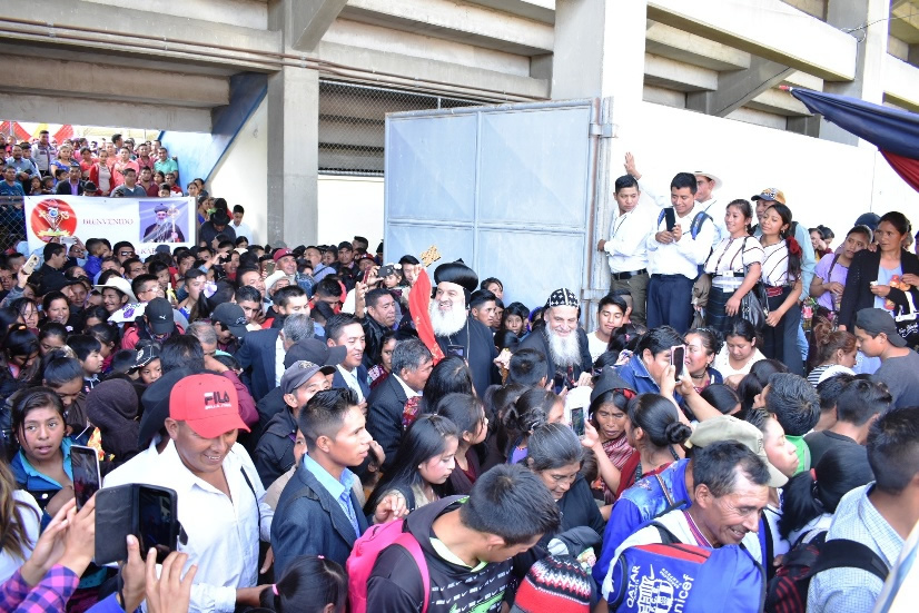 El jueves 14, por la mañana, Su Santidad junto a la Comitiva Patriarcal, llegaron hasta las instalaciones de la Escuela Oficial Rural Mixta de Chukumk de Santiago Atitlán, en donde le esperaban delegaciones de comunidades de Sololá, Totonicapán y de la Costa Sur.
