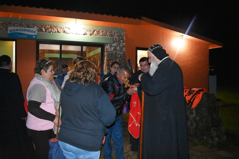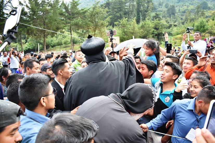 Los hermanos le dieron una calurosa bienvenida a Su Santidad en el lugar en el que tendría lugar la Celebración de la Divina Liturgia, que tenía como perspectiva la hermosa vista del Lago de Atitlán. |