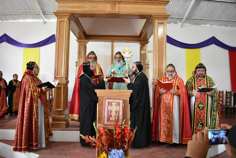 Su Santidad, después de llegar a Chel, presidió la celebración de la Divina Liturgia en la que concelebraron los demás arzobispos, monjes y presbíteros.