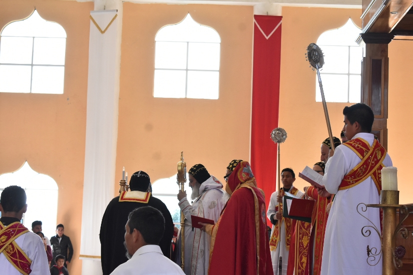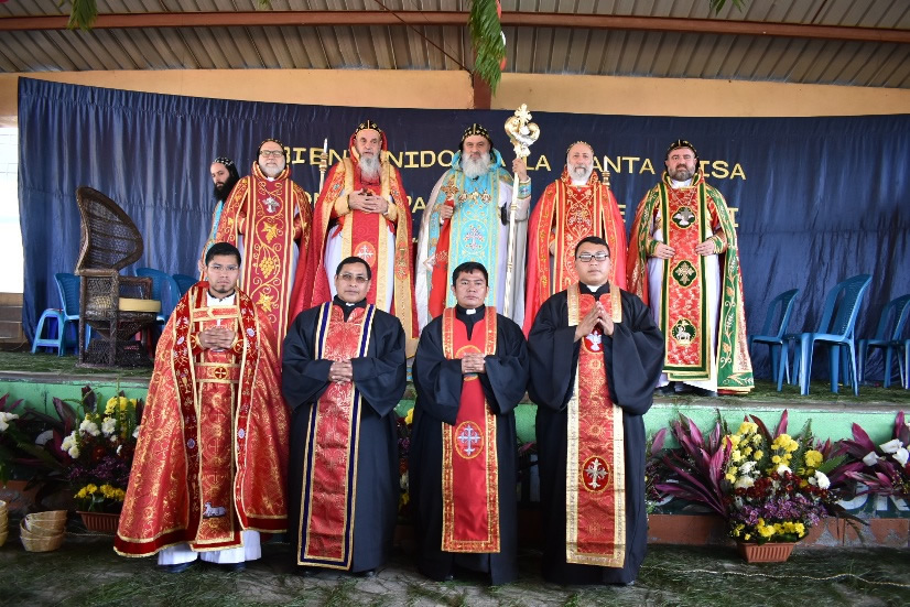 Su Santidad el Patriarca, acompañado por Sus Eminencias Arzobispo y por los padres que ejercen el ministerio en México, Padres José Alfredo, Mario y Dionisio y el Padre Franciscos de Nentón.