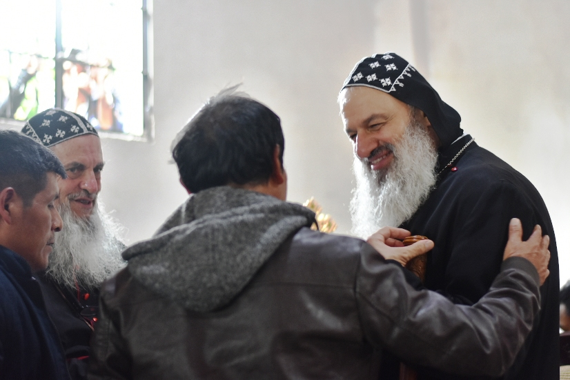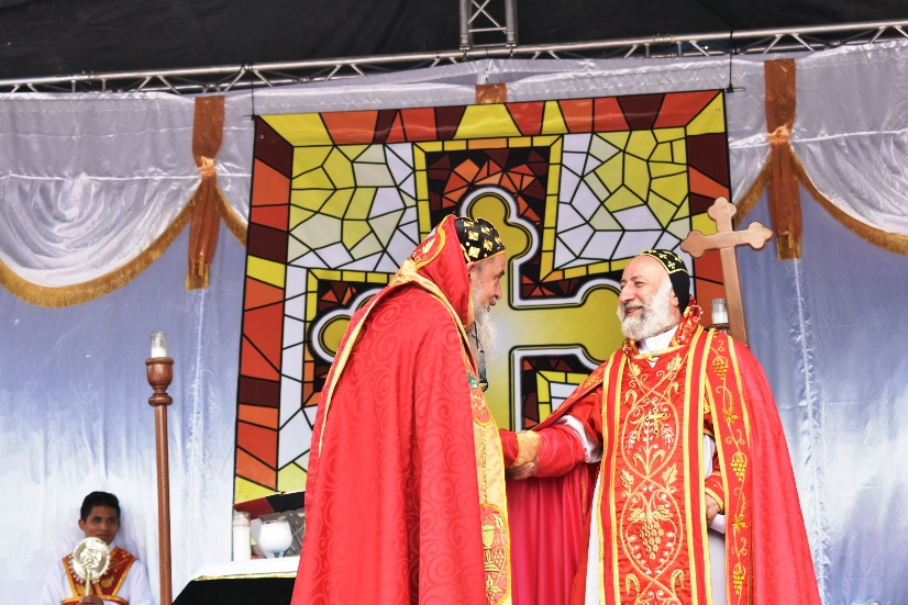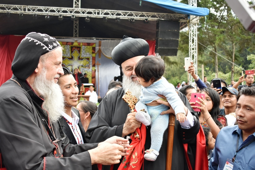 Al final de la celebración de la Santa Misa, Su Santidad el Patriarca Ignacio Efrén II, tuvo la oportunidad de saludar y bendecir a la multitud que había participado en la celebración.