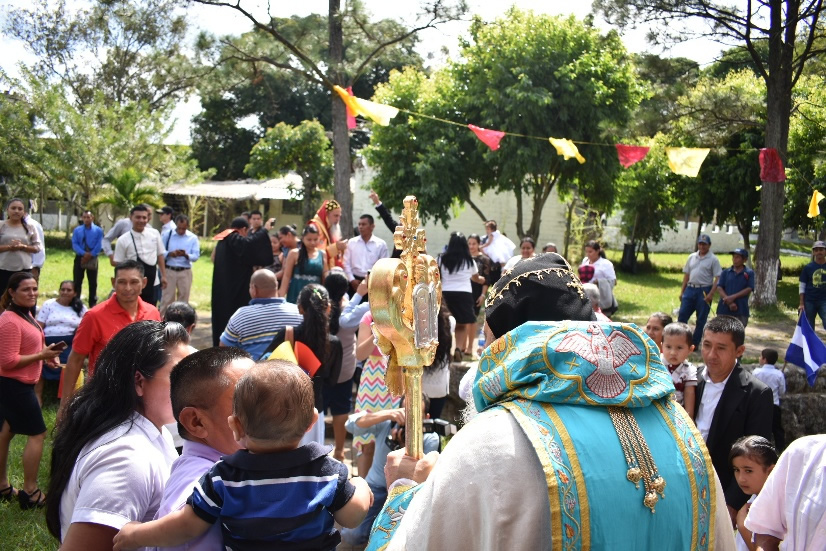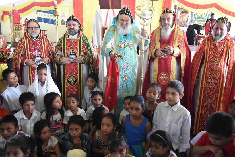 Después de la Santa Misa, los niños de la parroquia Espíritu Santo de Ahuachapán, presentaron a Su Santidad y a la comitiva patriarcal algunos recuerdos.
