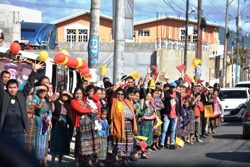 Al llegar a San Juan Comalapa, miles de fieles habían inundado la calle principal de entrada a la población, para dar la bienvenida a Su Santidad.