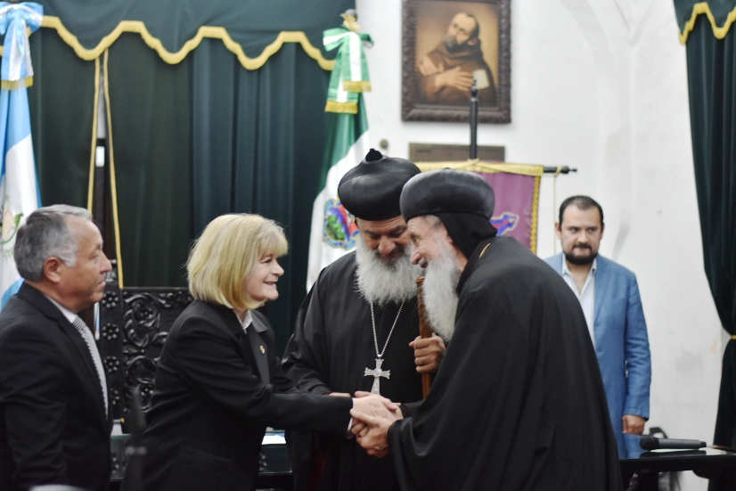 En el Ayuntamiento de la Antigua Guatemala, La Alcaldesa Municipal y el Concejo, celebraron una sesión extraordinaria en la que se otrogaron las llaves de la ciudad a Su Santidad y se le reconoció como Visitante Distinguido.