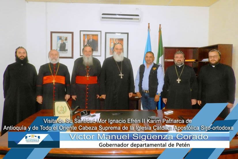 El gobernado de El Petén Licenciado Víctor Manuel Sigüenza, recibió a Su Santidad y a la comitiva patriarcal en el aeropuerto de Santa Elena, a su llegada a Petén.