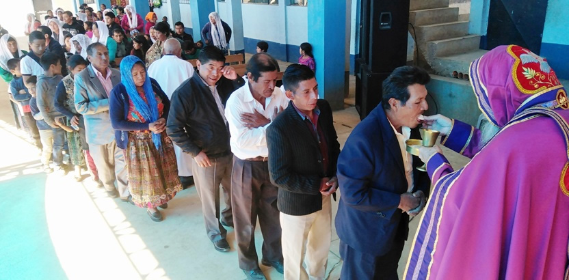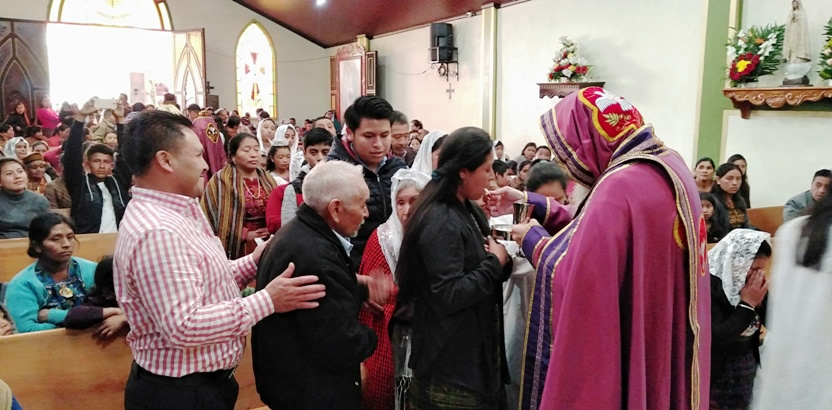| 12: COMUNIÓN SOLEMNE Y BENDICIÓN DEL ALTAR Y DEL SAGRARIO EN LA COMUNIDA DE SAN JUAN IXCOY, HUEHUE. |