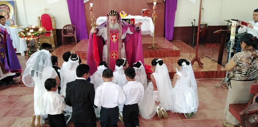 El arzobispo presidió la celebración de la santa misa y se administraron los sacramentos de la iniciación a seis niños, hijos de miembros de la comunidad.