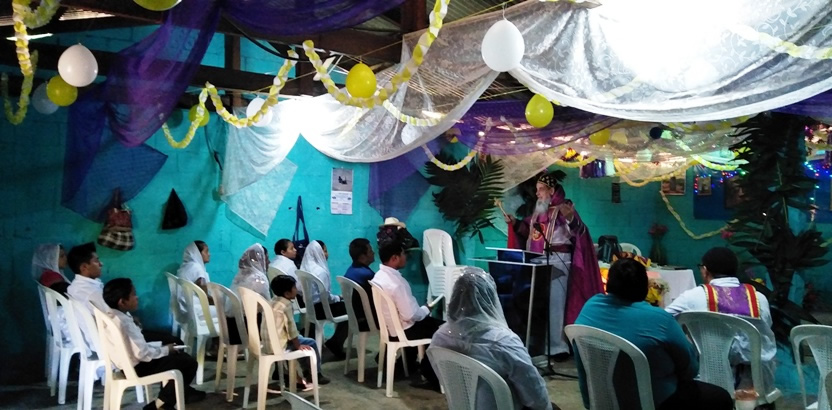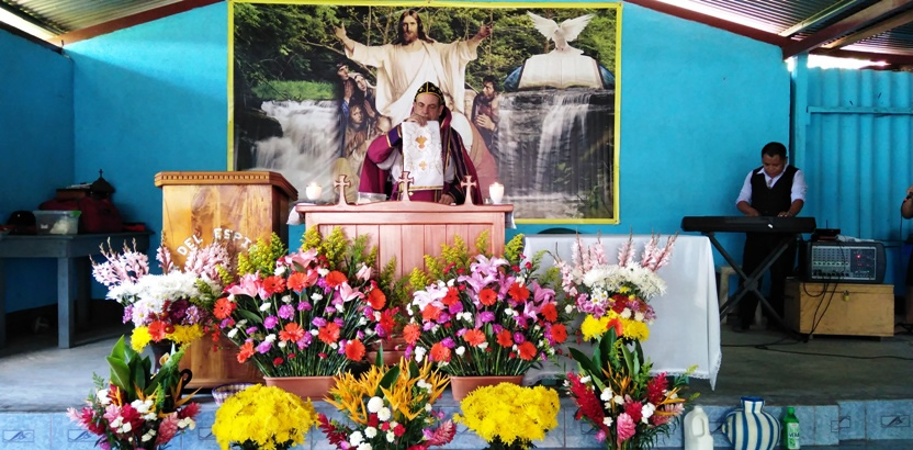 El viernes por la noche, en la sede en donde se reúne la pequeña y naciente comunidad de la Colonia Rayos del Sol de Mazatenango, el arzobispo llegó para celebrar la misa.