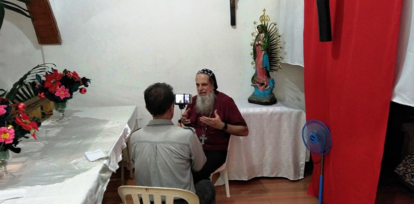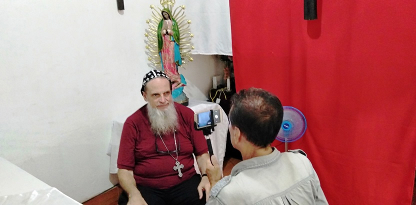 Después de todas las actividades, el arzobispo tuvo un breve encuentro con un reporter del canal de cable que transmite en la Costa Sur.