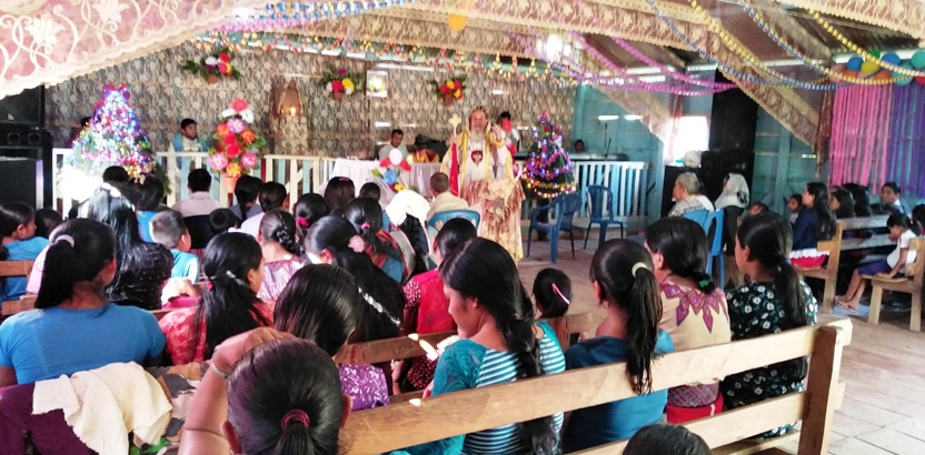 El viernes 27 de diciembre, el arzobispo, acompañado de los padres José Bailiner, Norvin y Wilfredo, llegó hasta la remota comunidad de Sajtziván, de Nebaj, El Quiché, pero que eclesiásticamente hace parte de la parroquia de la Fe de los Mártires de Chajul, Chajul.