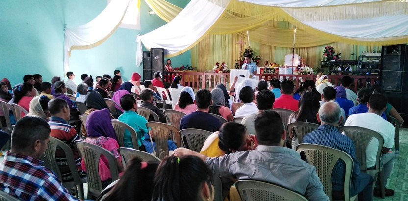 Con ocasión de la visita del arzobispo se administró la confirmación y el envío misionero a 21 hermanos, miembros de la comunidad local. El arzobispo felicitó a los hermanos por el compromisos que han asumido en construir un nuevo templo y por el sostenido crecimiento que está experimentando la comunidad, como fruto del trabajo misionero. |