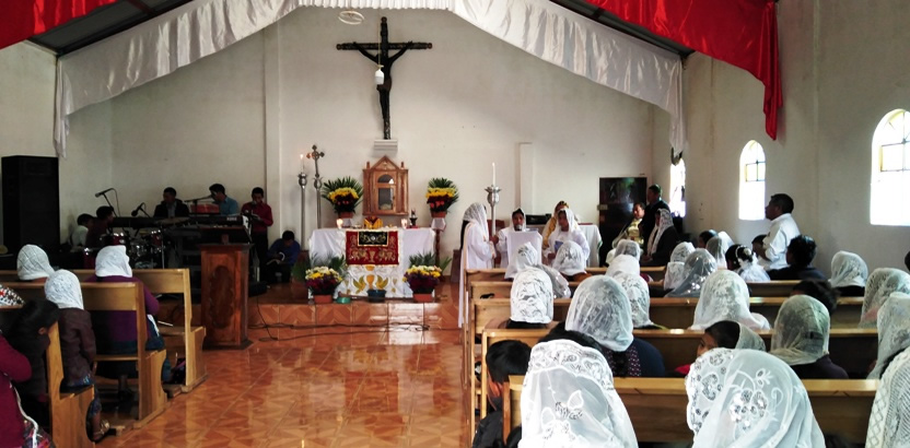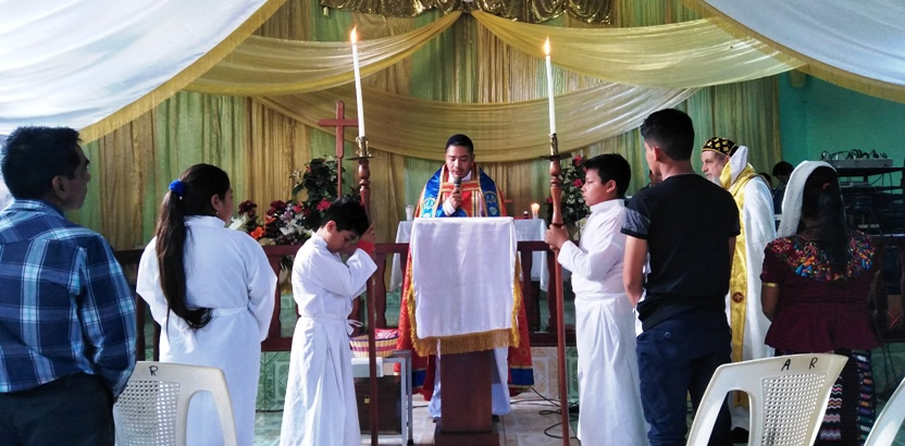 El sábado 4, después del medio día, el Padre Marcos Caicedo, párroco local, organizó una liturgia para servidores y líderes de la comunidad central de San Mateo Ixtatán.