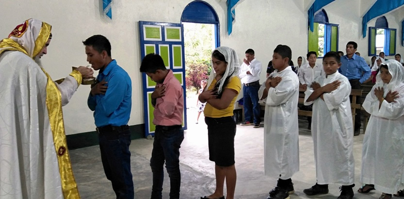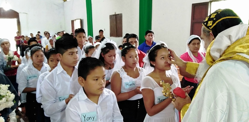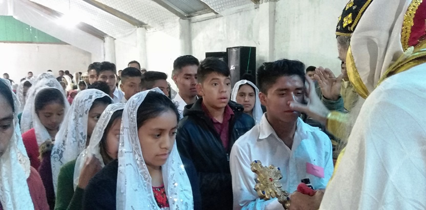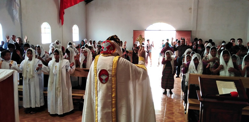 Hacia el final de la mañana, Mor Santiago Eduardo, acompañado por el párroco Padre Hugo Patzán, presidió la liturgia para administrar la confirmación y el envío misionero a 26 hermanos.