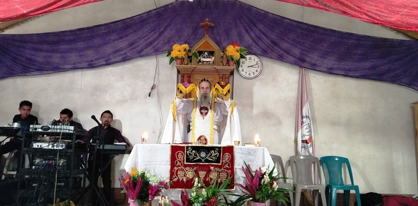 La víspera del Año Nuevo, el arzobispo, junto al Padre Francisco Pastrana, presidió la celebración de la Divina Liturgia de agradecimiento por la llegada del Año Nuevo, en la sede de la parroquia Renovación Carismática de Guaxacaná, Nentón, de Huehuetenango.