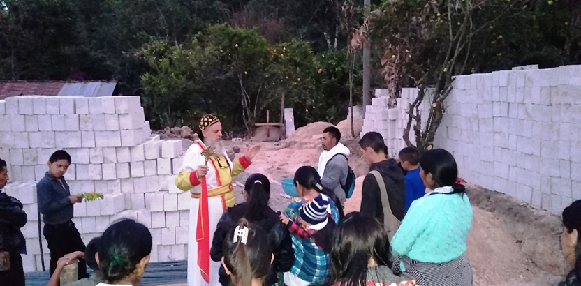 Se hizo oración sobre el lugar, sobre el pueblo de Dios y sobre los materiales que se utilizarán en la construcción, así como sobre la primera piedra.