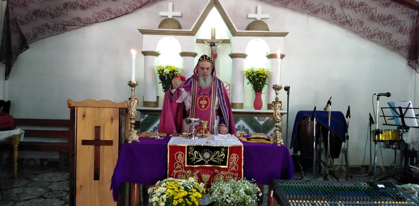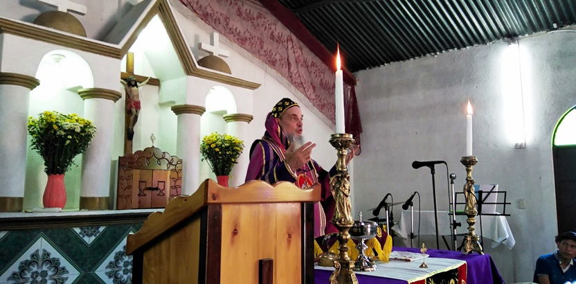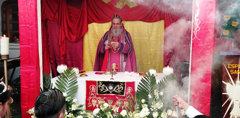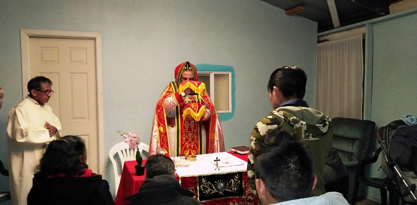 El arzobispo celebró la misa y administro los sacramentos de la iniciación cristiana a dos niños, hijos de miembros de la comunidad local.