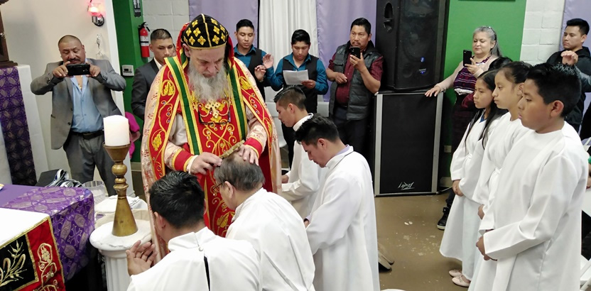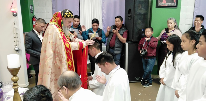Después de la formación con los hermanos de Riverside, el arzobispo presidió la celebración de la divina liturgia, dentro de la cual, se confirió la orden de acólito a cuatro miembros de la comunidad.