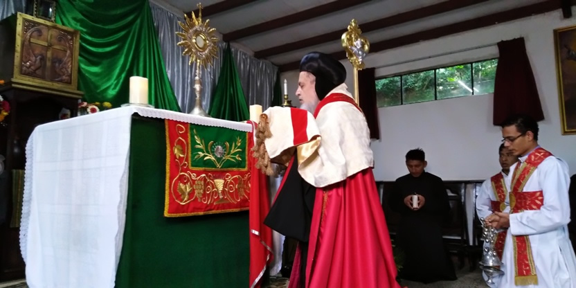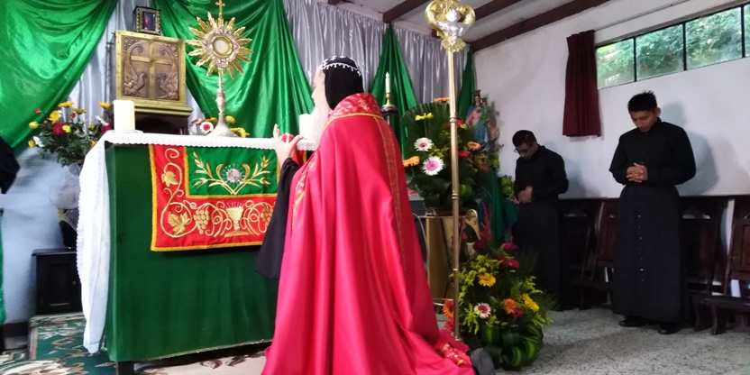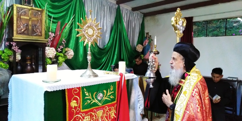 El miércoles 26, por la mañana, en el Seminario Santa María del Nuevo Éxodo, de San Lucas Sacatepéquez, Mor Santiago Eduardo presidió la adoración al Santísimo Sacramento y el canto del Oficio Divino.