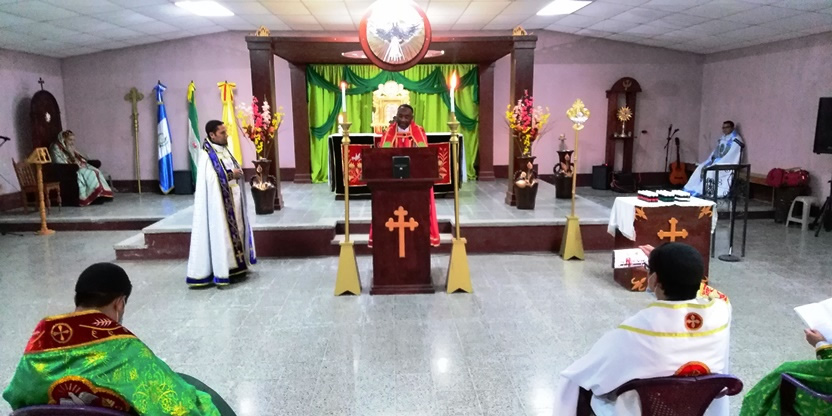 El martes 18 de agosto, se celebró la divina liturgia desde el Seminario Santa María del Nuevo Éxodo, la cual fue transmitida por las redes sociales, como parte del programa de emergencia pastoral que, desde abril ha emprendido el arzobispo, para tratar de llegar a los hermanos, en medio del confinamiento provocado por la pandemia que azota al mundo.