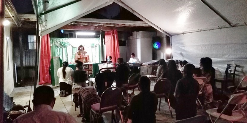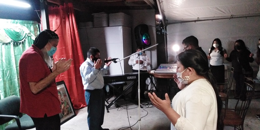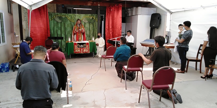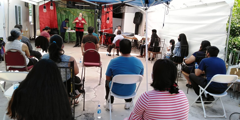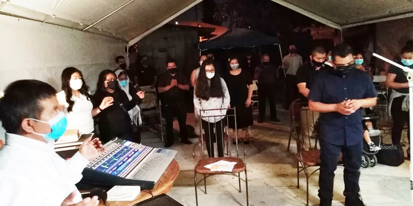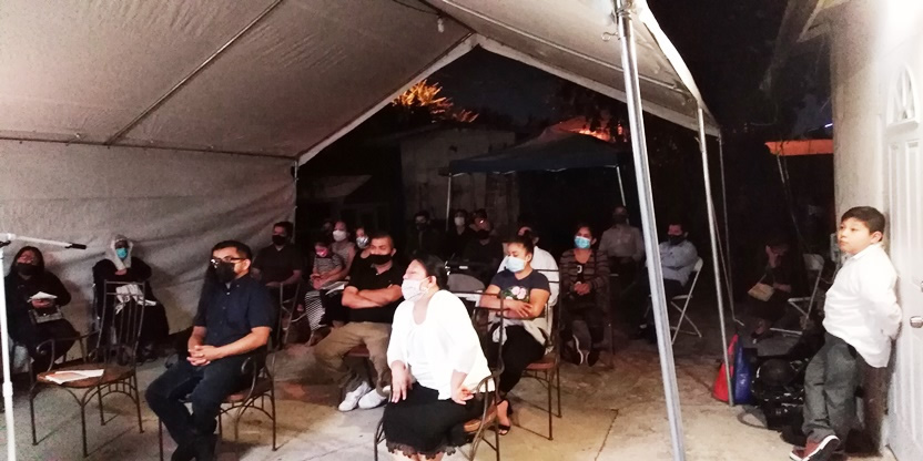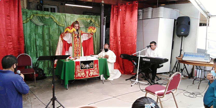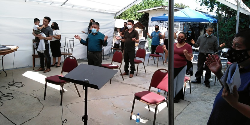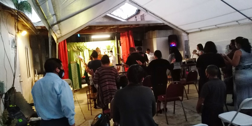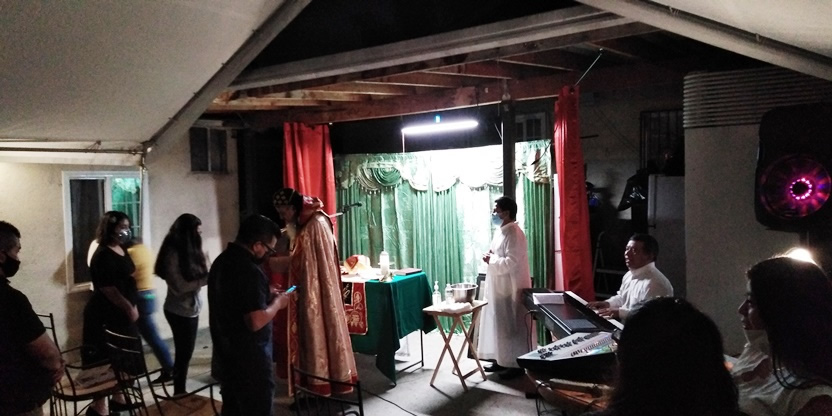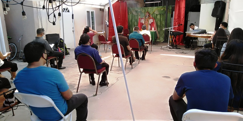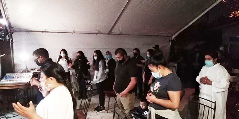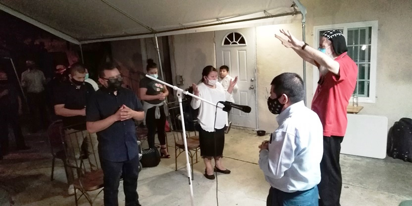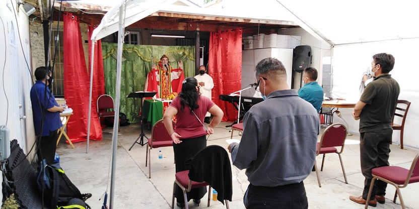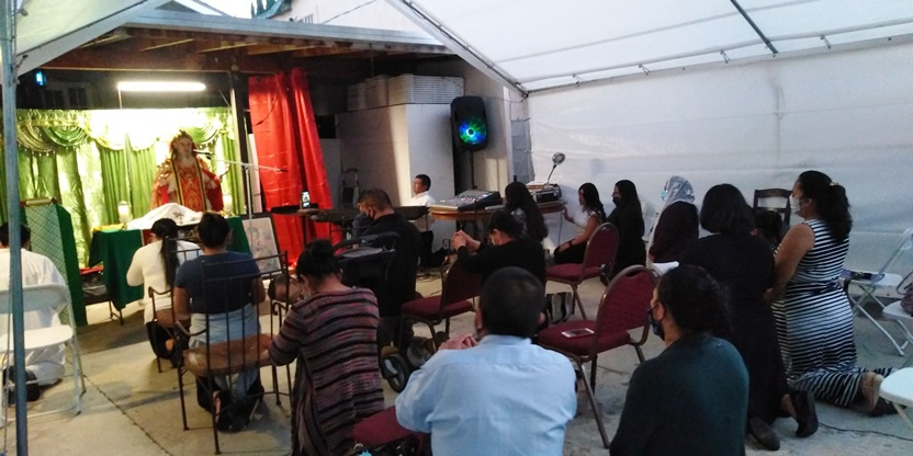 La celebración, al igual que las del día viernes, se han llevado en un área abierta de la casa del hermano Ronaldo Velásquez, que ha abierto las puertas de su casa para poder celebrar cumpliendon con los requisitos sanitarios establecidos en el área de Los Ángeles.