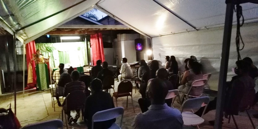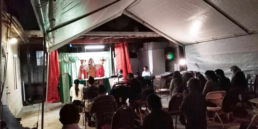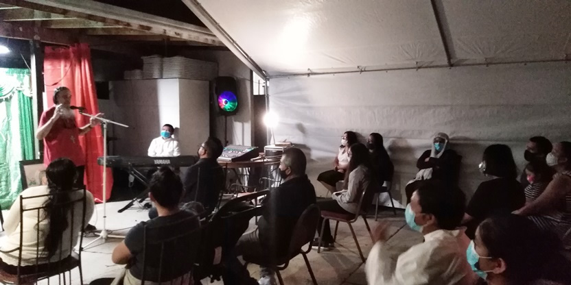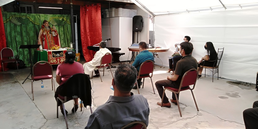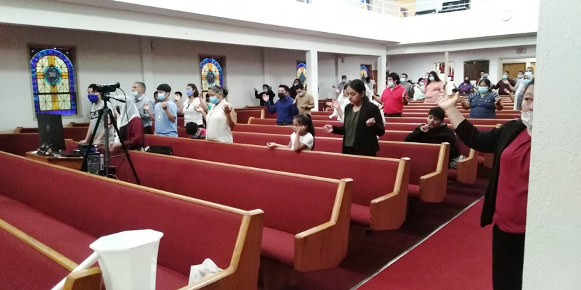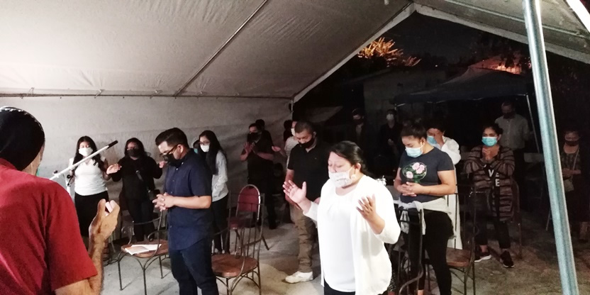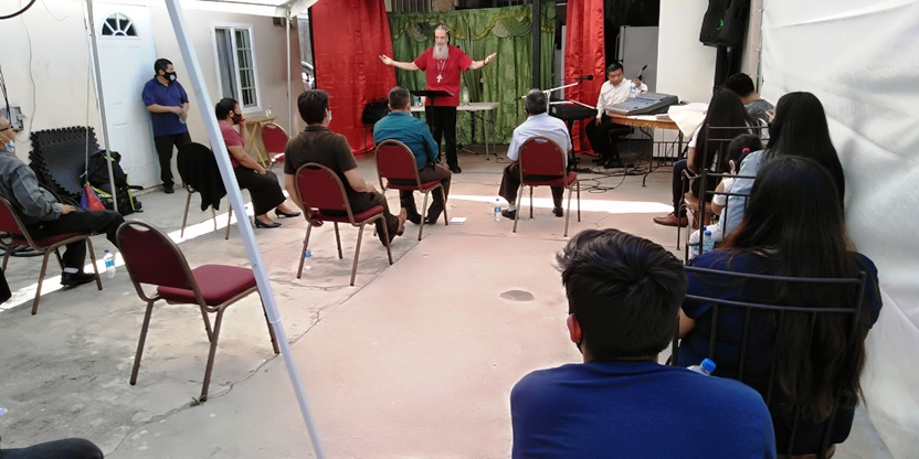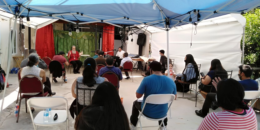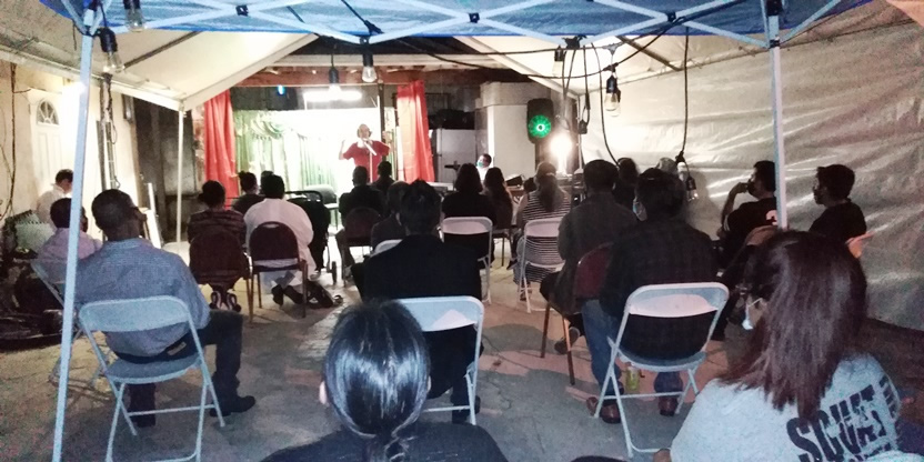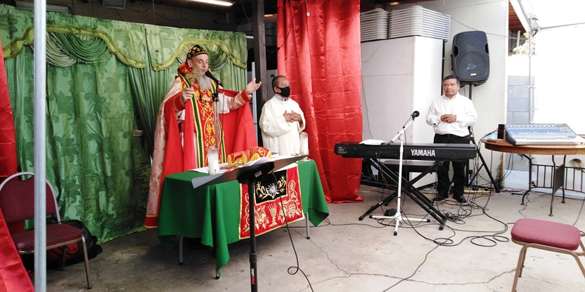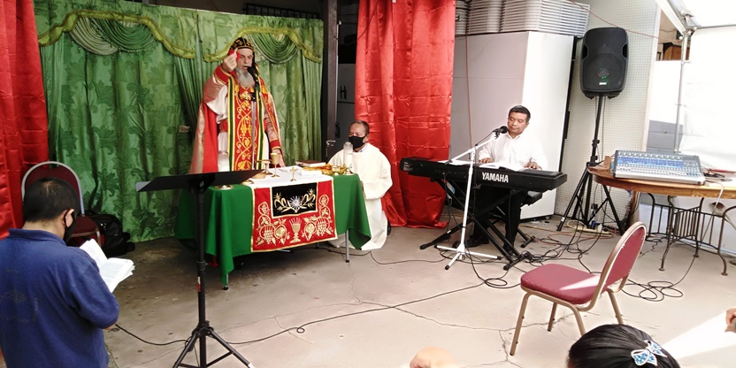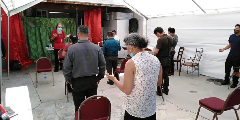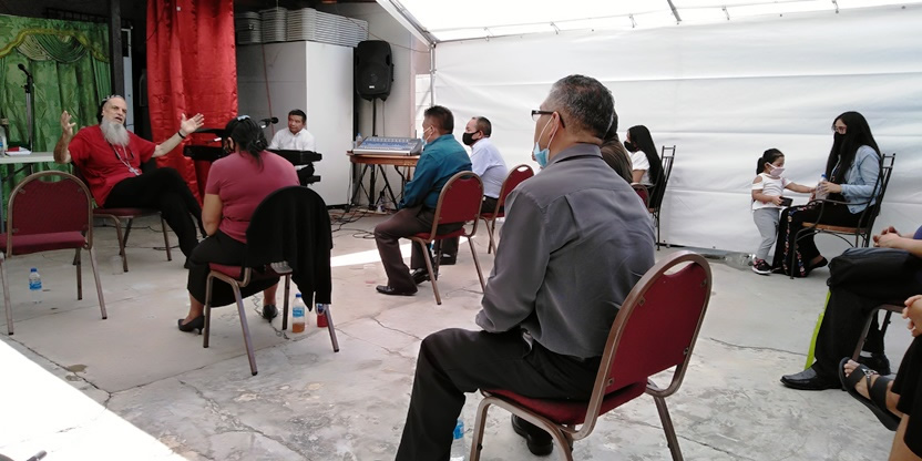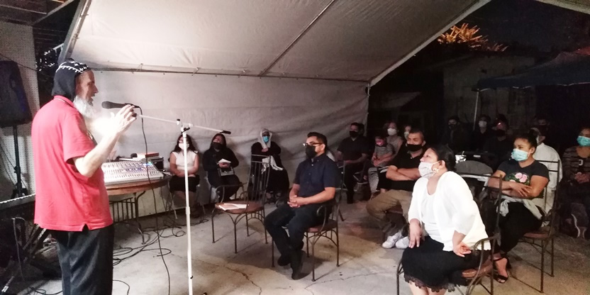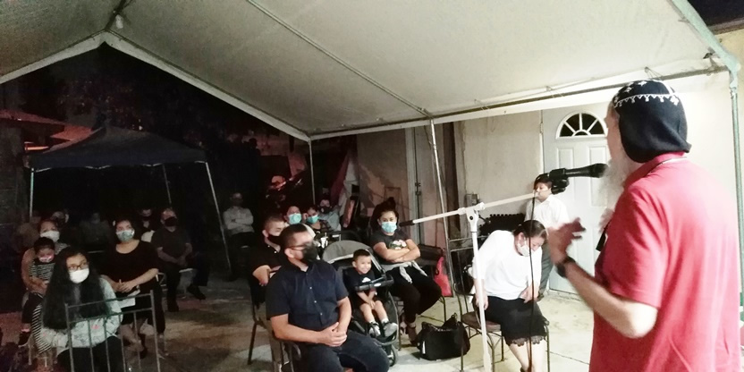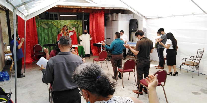 La celebración, al igual que las del día viernes, se han llevado en un área abierta de la casa del hermano Ronaldo Velásquez, que ha abierto las puertas de su casa para poder celebrar cumpliendon con los requisitos sanitarios establecidos en el área de Los Ángeles.