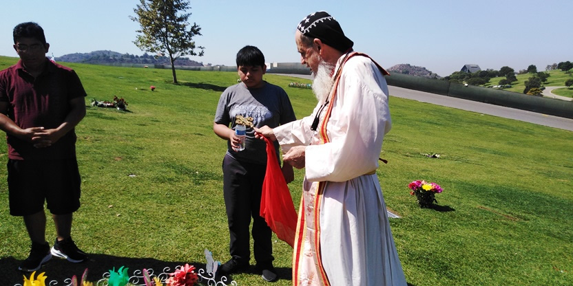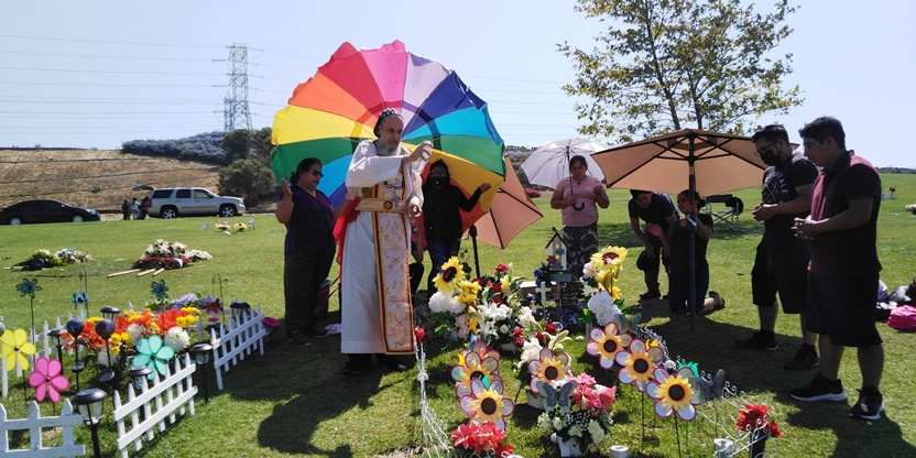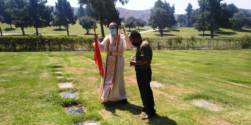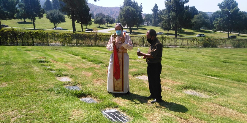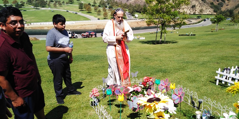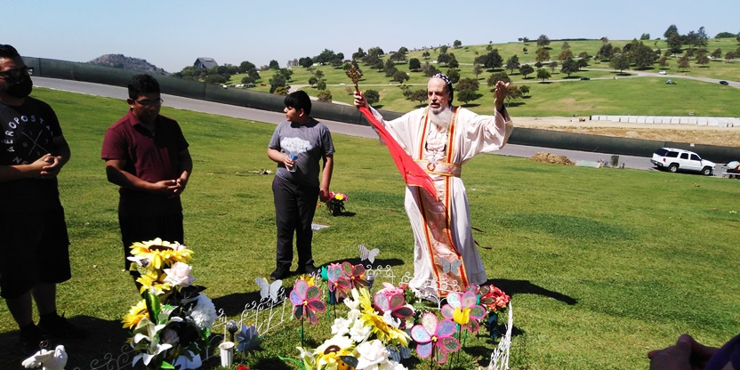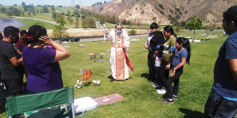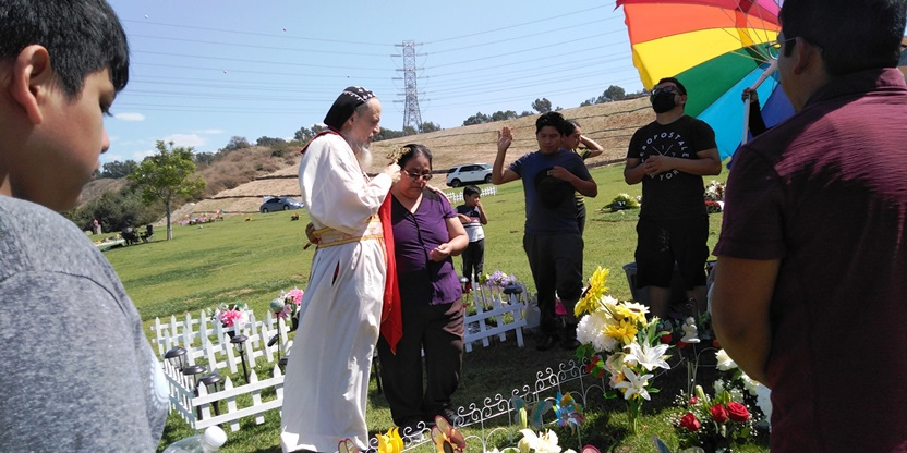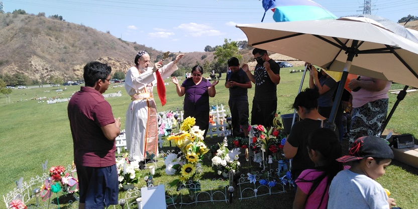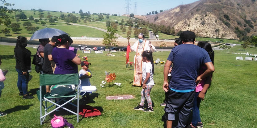 Con ocasión de la visita que está haciendo el arzobispo a la parroquia, fue a visitar el cementerio Rose Hill. ubicado cerca de la ciudad de Los Ángeles. Oró, junto a la familia del hermano León, por su eterno descanso y pidiendo su intercesión ante el Señor, por su familia y la parroquia.