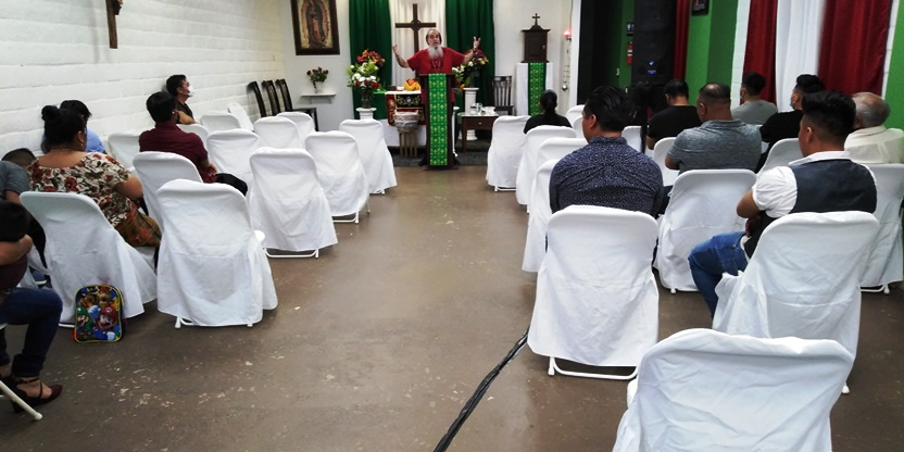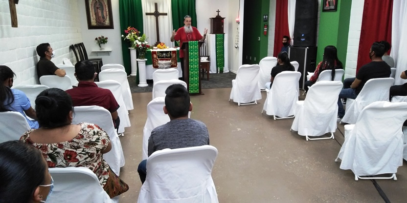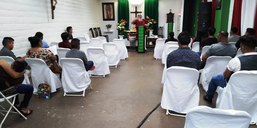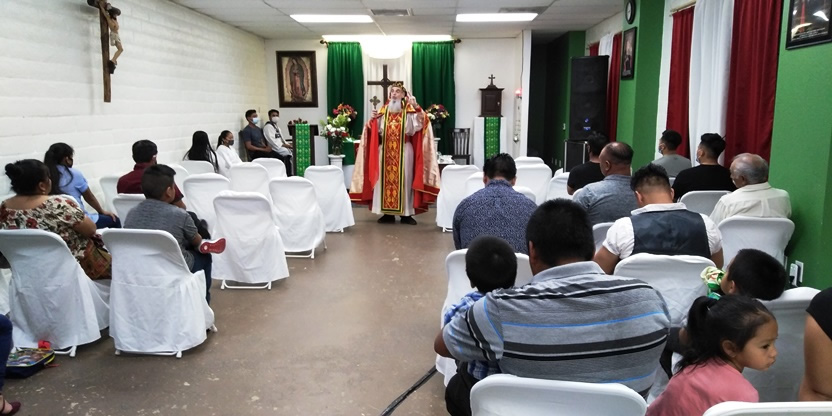 El sábado por la noche, el arzobispo llegó hasta la sede en donde se reune la comunidad de El Pescador, de la Parroquia de San Miguel Arcángel, de California.