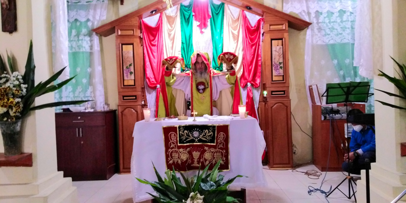 La divina liturgia se celebró en la casa de la familia Carías en San Bartolo Milpas Altas, en donde está residiendo actualmente doña Zoila.