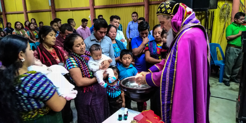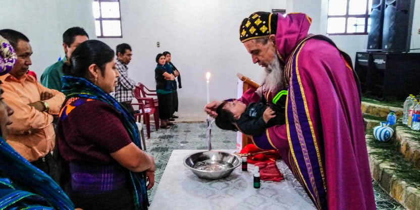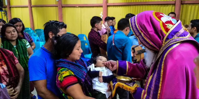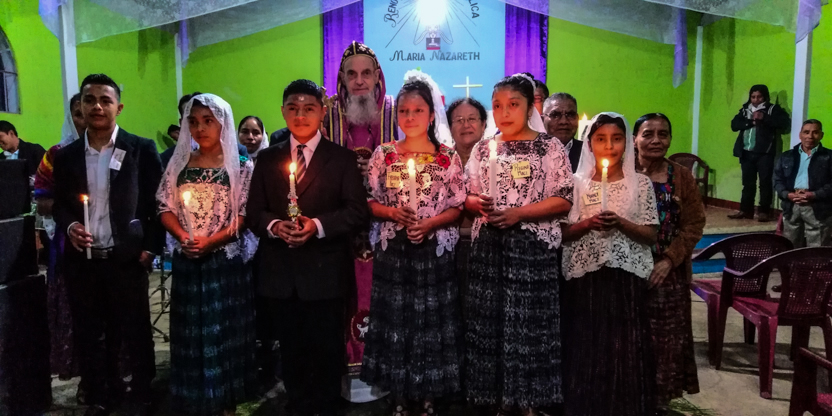 Dentro del marco de la celebración de la divina liturgia en la comunidad Unción del Espíritu Santo de Santiago Atitlán, se administraron los sacramentos de la iniciación cristiana a tres niños.