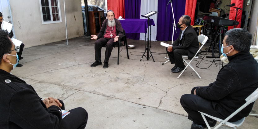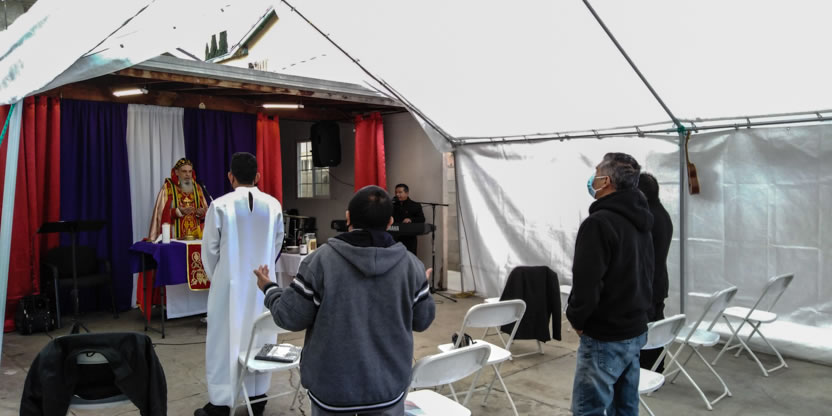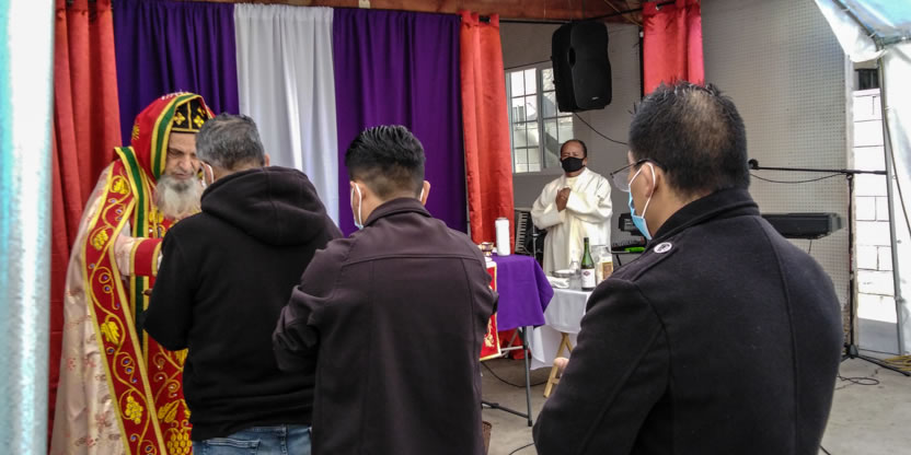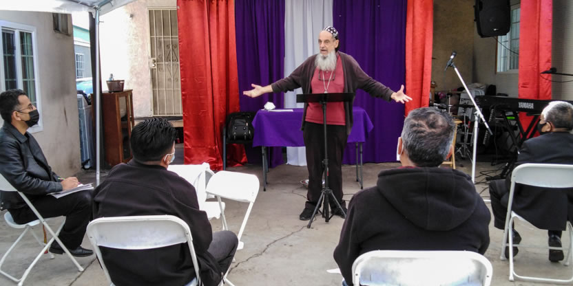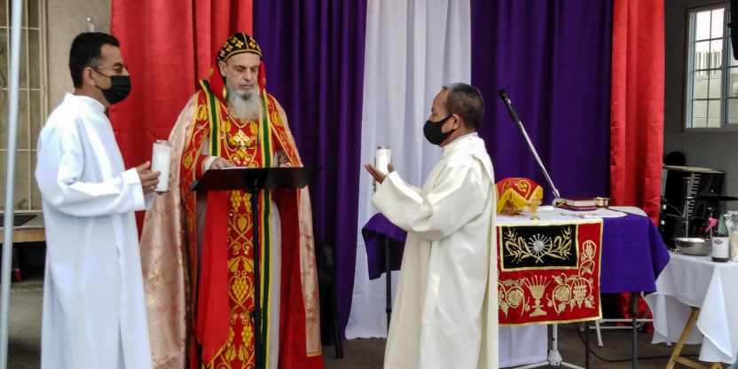 El domingo 13 de diciembre, en el patio posterior de la residencia del Hermanos Ronaldo, para cumplir con los requisitos sanitarios establecidos en California, el arzobispo presidió la celebración de la Divina Liturgia para servidores de las comunidades de la Parroquia de San Miguel Arcángel.