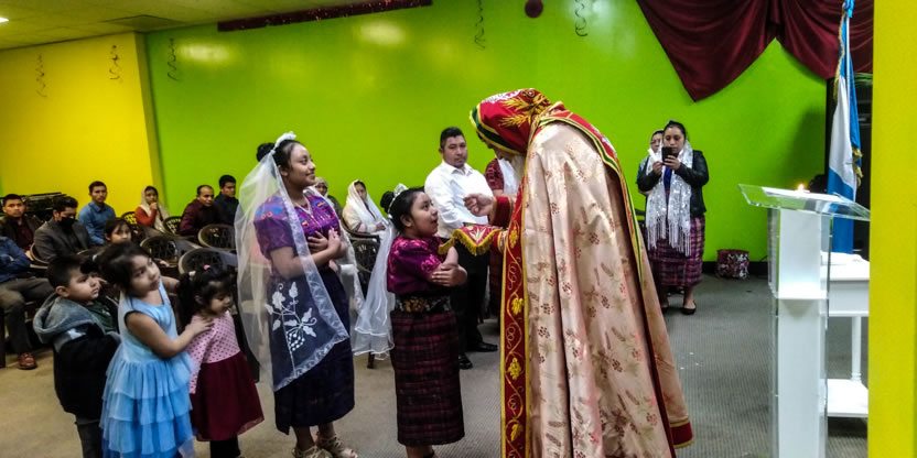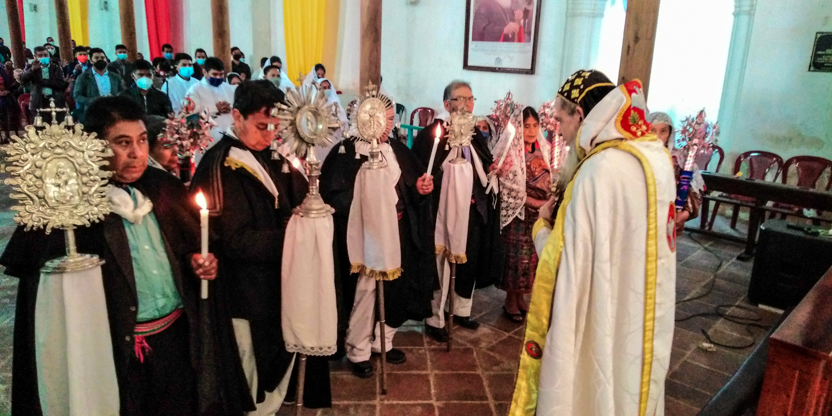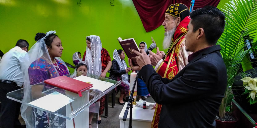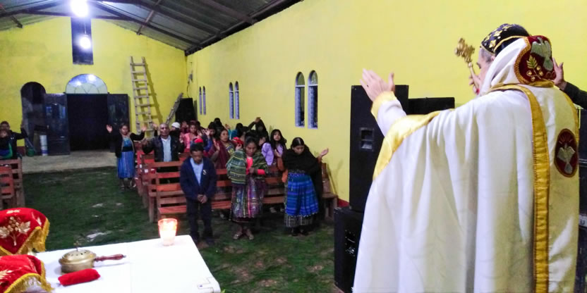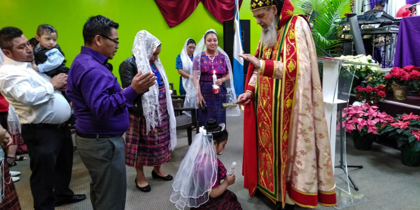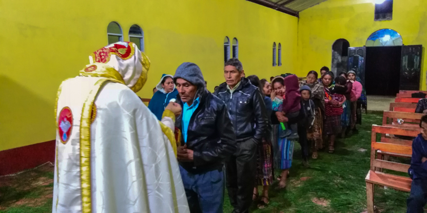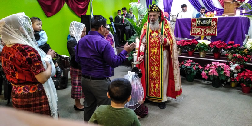 Hacia el final de la tarde del vernes 25, el arzobispo presidió la celebración de la Divina Liturgia con los hermanos de la parroquia de la Santísima Trinidad de Uspantán, que estaban participando en gran número.