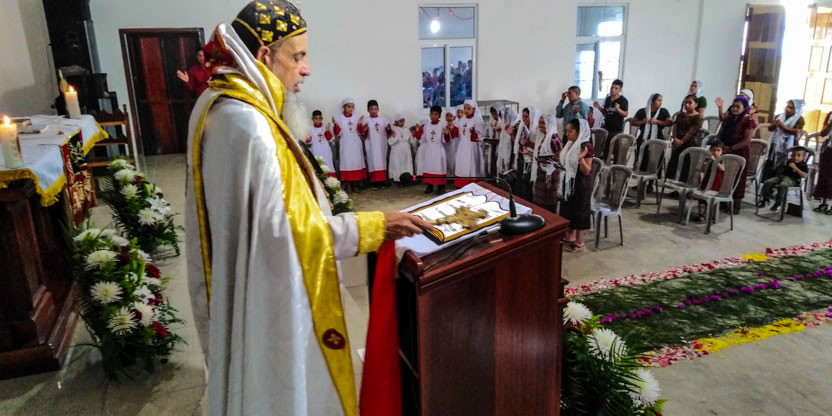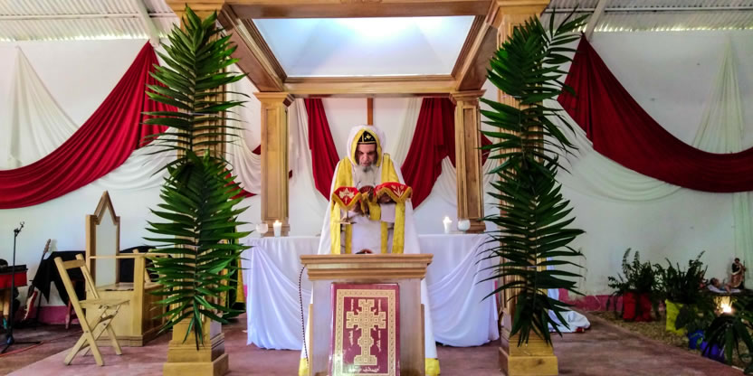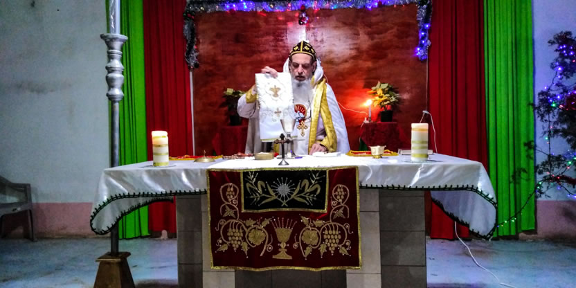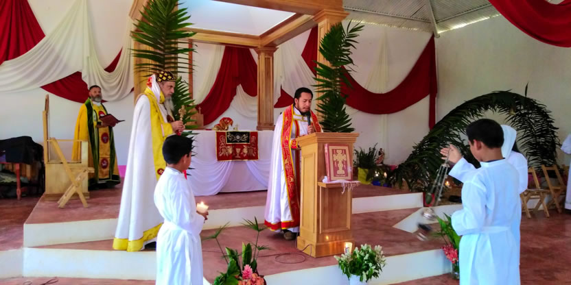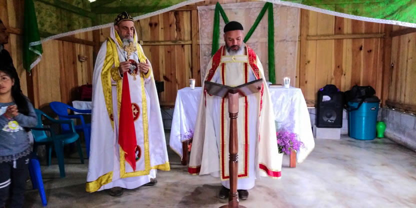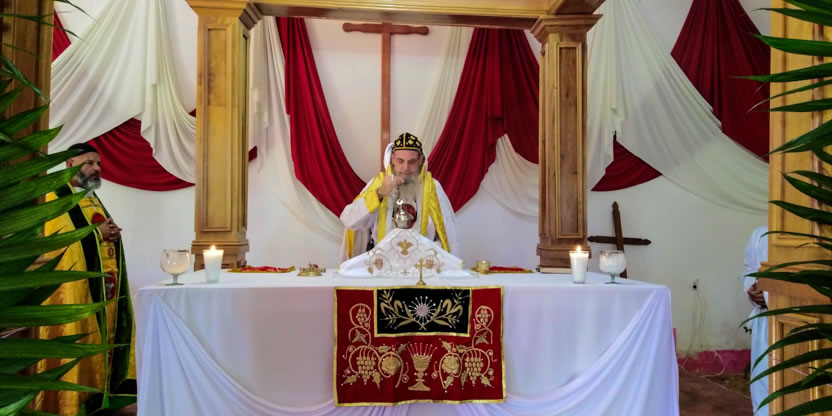 Después. de la bendición del altar y del ambón, el arzobispo presidió la celebración de la divina liturgia en el nuevo templo que han construido los hermanos, en un área contigua a donde se encontraba el primer templo, que era muy pequeño.
