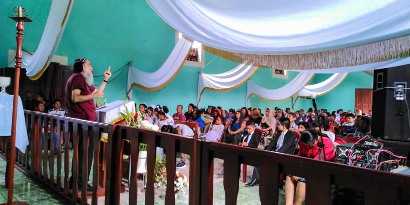 El jueves 31 de diciembre, por la mañana, el arzobispo llegó hasta la sede de la parroquia Buen Pastora, del Amparo Agua Tinta, Margaritas, Chiapas, México, para presidir la celebración del decanato de Chiapas.