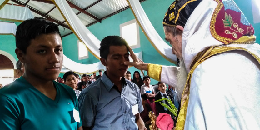 Dentro del amrco de la celebración de la divina liturgia, se administró la confirmación y el envío misionero a dos jóvenes, procedentes de la comunidad de Buxup.