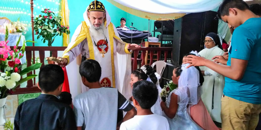 El domingo 3, por la tarde, el arzobispo presidió la celebración de la divina liturgia, con los hermanos de la comunidad de Las Victorias, Chancolín, Barillas.