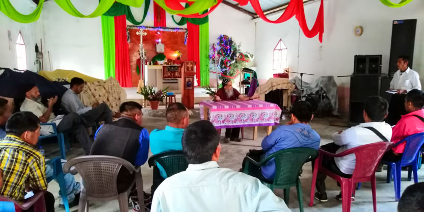 | 31 DICIEMBRE: DIÁLOGO CON PRESBÍTEROS, DIÁCONOS Y LÍDERES EN EL AMPARO AGUA TINTA, MARGARITAS, CHIAPAS. |