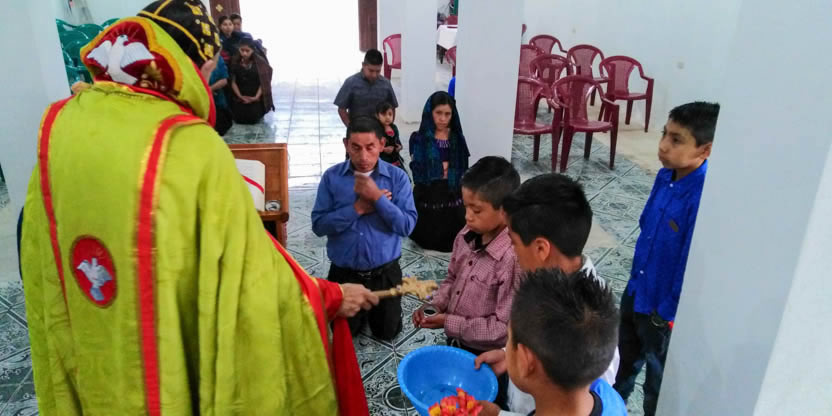 Dentro del marco de la celebración de la divina liturgia en la comunidad de Chuitzanchaj, se administraron los sacramentos de la iniciación cristiana al niño Moisés Jeremías.