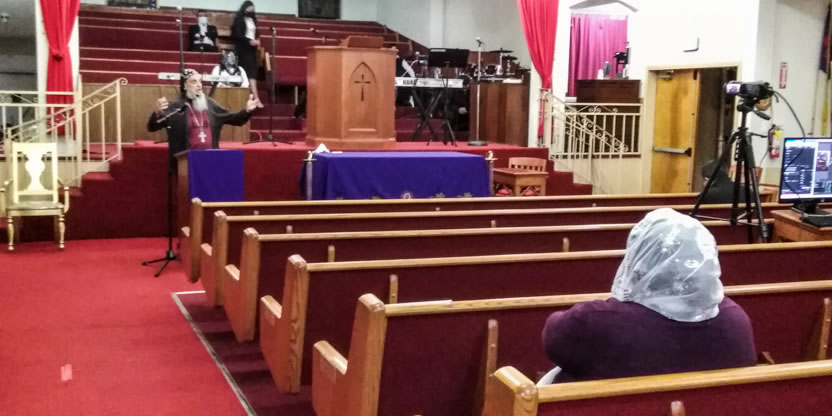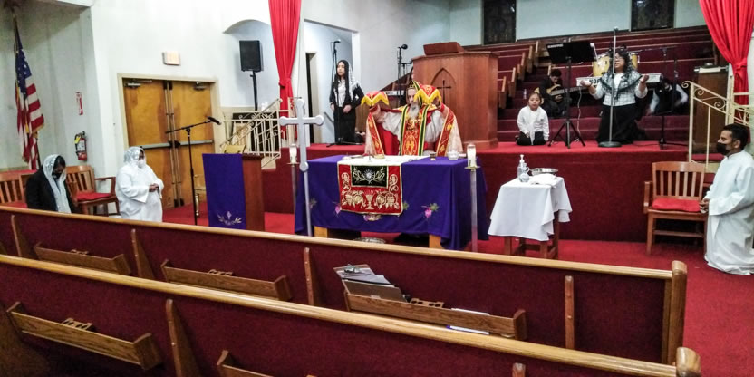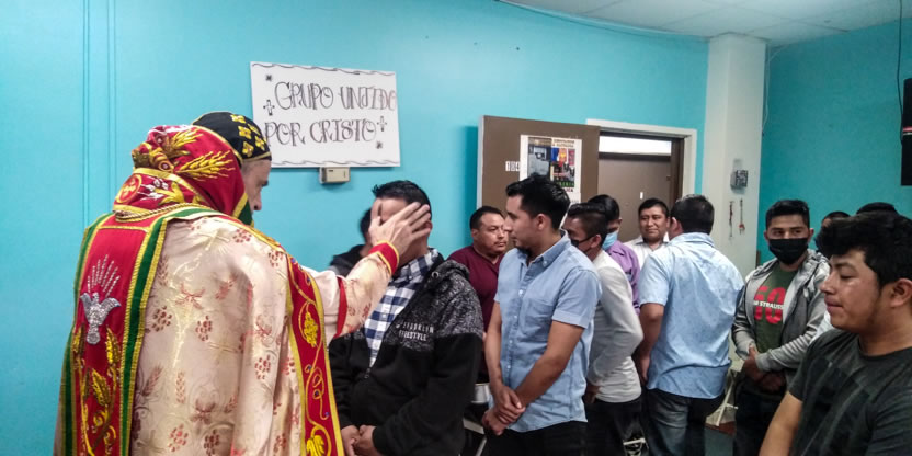 El jueves 18, por la noche, Mor Santiago Eduardo llegó hasta la sede de la Comunidad Ministerio el Pescador, de Los Ángeles, California, para presidir la celebración de la Divina Liturgia.