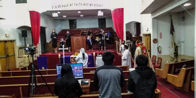 El domingo 21, por la noche, Mor Santiago Eduardo concluyó la visita pastoral a la parroquia de San Miguel Arcángel, celebrando la misa para los hermanos de la comunidad Santa María de Guadalupe de Riverside.