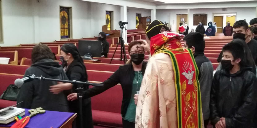 Dentro del marco de la celebración de la divina liturgia en la comunidad Ministerio El Pescador, el arzobispo hizo la bendición de las cenizas y seguidamente la imposición de la misma entre los numerosos hermanos que participaron en la celebración.
