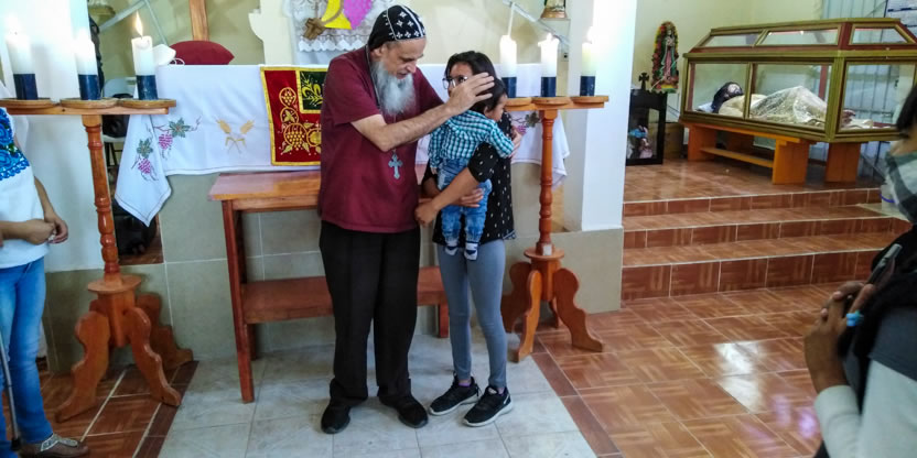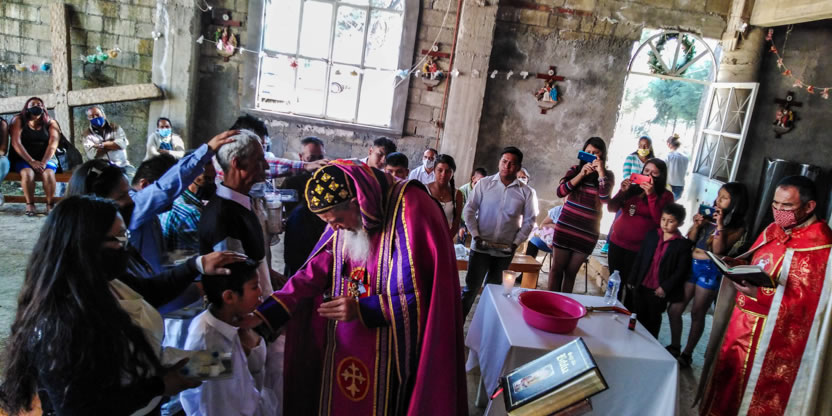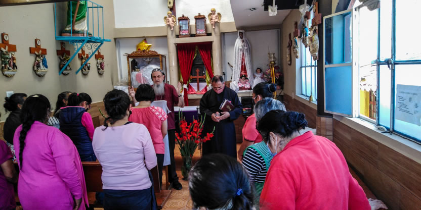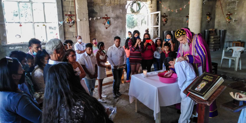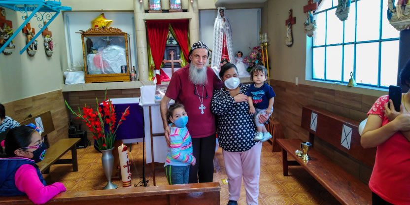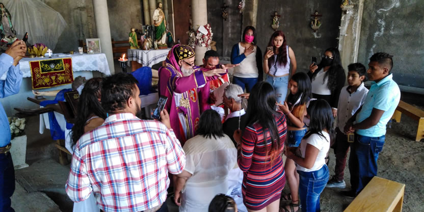 La visita a la comunidad comenzó con la celebración de la divina liturgia en la cual concelebraron los padres Mario López, encargado pastoral local y Vicario de la Vicaría del Centro de México y Dionisio Montiel.
