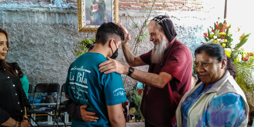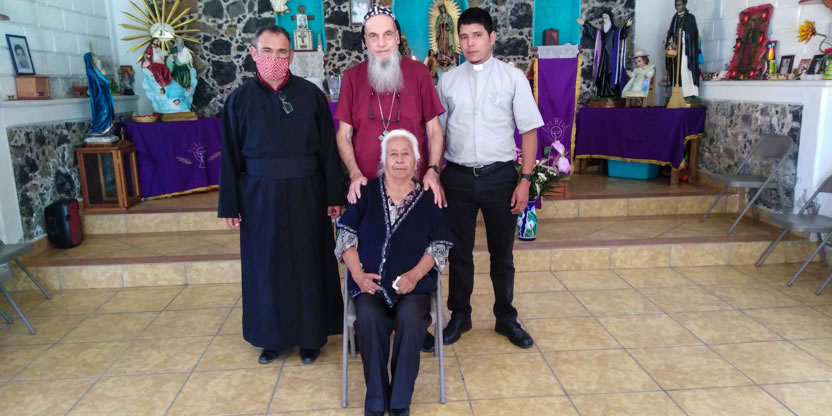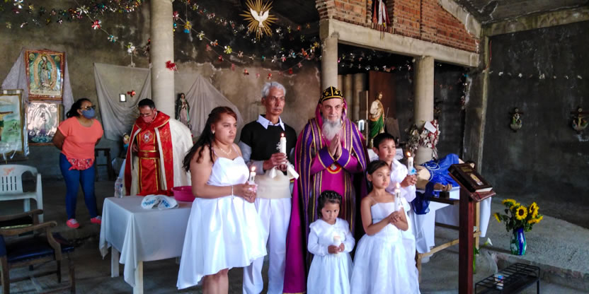 Dentro del marco de la visita al Ajusco, se preparó la celebración de los sacramentos de la iniciación cristiana a cinco hermano, el primero un anciano y los otros jóvenes y niños.