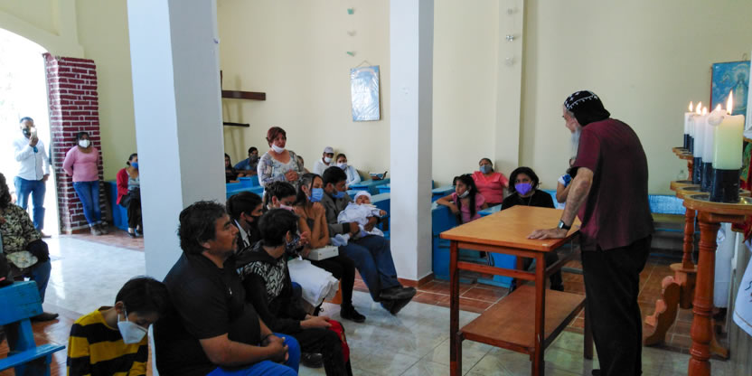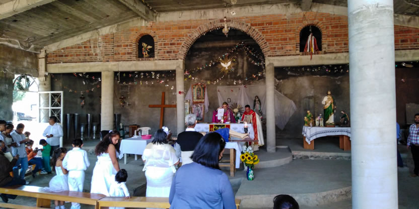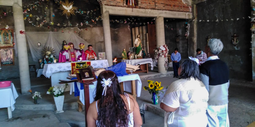 El domingo 28, por la tarde, el arzobispo, acompañado por el padre Mario y por el diácono Carlos, llegó hasta la sede de la parroquia de Santa María de los Lagos de Coyotepec.