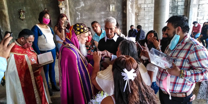 Una pareja de ancianos, los hermanos Francisco y Marcelina, contrajeron matrimonio en el marco de la visita del arzobispo al área de El Ajusco.
