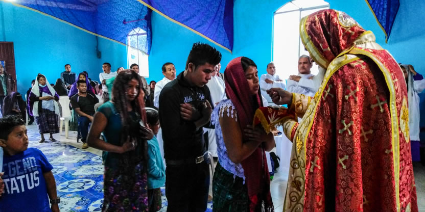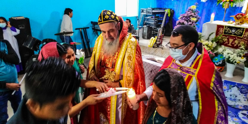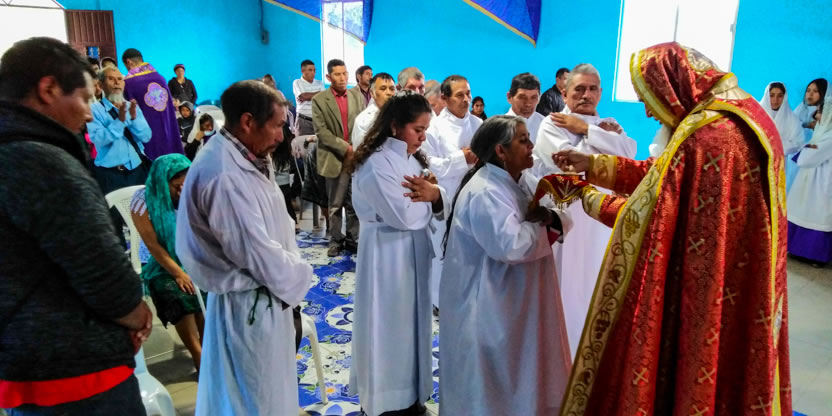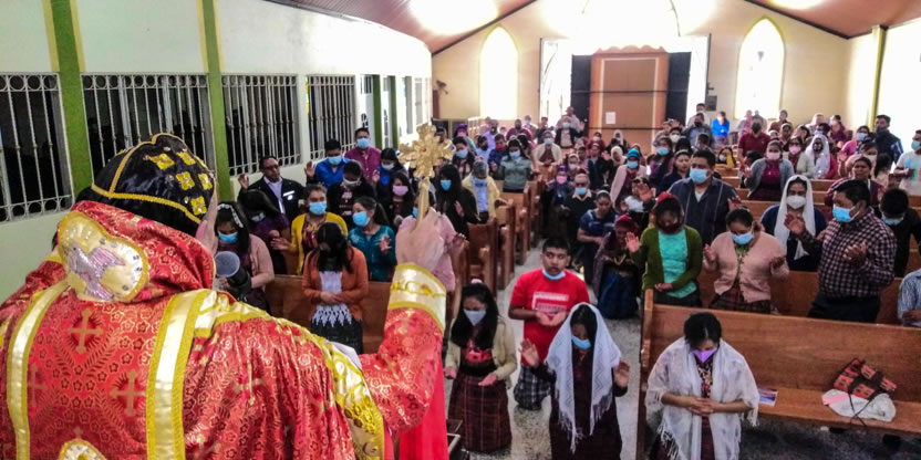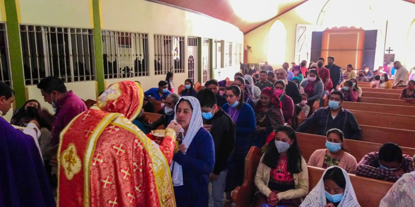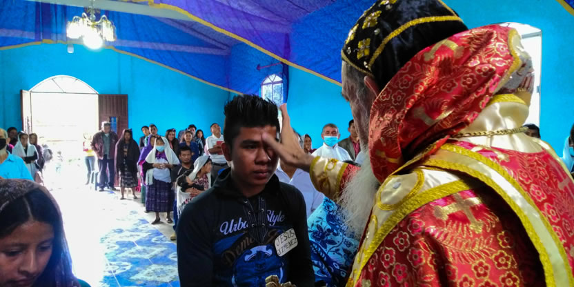 Dentro del marco de la celebración de la divina liturgia, el padre Santos, presentó a cuatro hermanos provenientes de la comunidad de San Andrés Huista, para que recibieran la confirmación y el envío misionero.