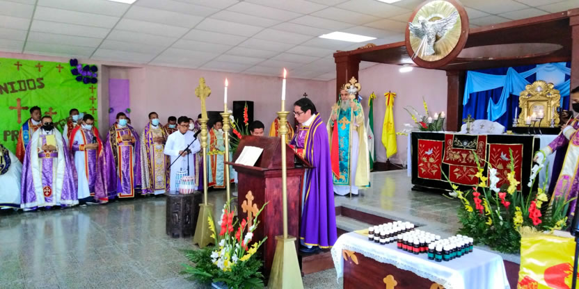 A las diez de la mañana, del 30 de marzo, el arzobispo presidió la divina liturgia en el Centro de Formación de Jumaj, en la cual concelebraron todos los presbíteros de la vicaría de Huehuetenango, con excepción de quienes, por causa mayor, no pudieron participar.